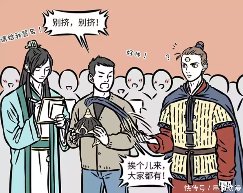 《非人哉》漫画版中,汉朝的杨戬在不断适应现代生活,这一次是误入剧组。那么杨戬会有什么表现?他被误以为是杨戬扮演者的粉丝,铁胄还被签名。随后道具组讨要衣服,杨戬气不过,就揍了他一顿。