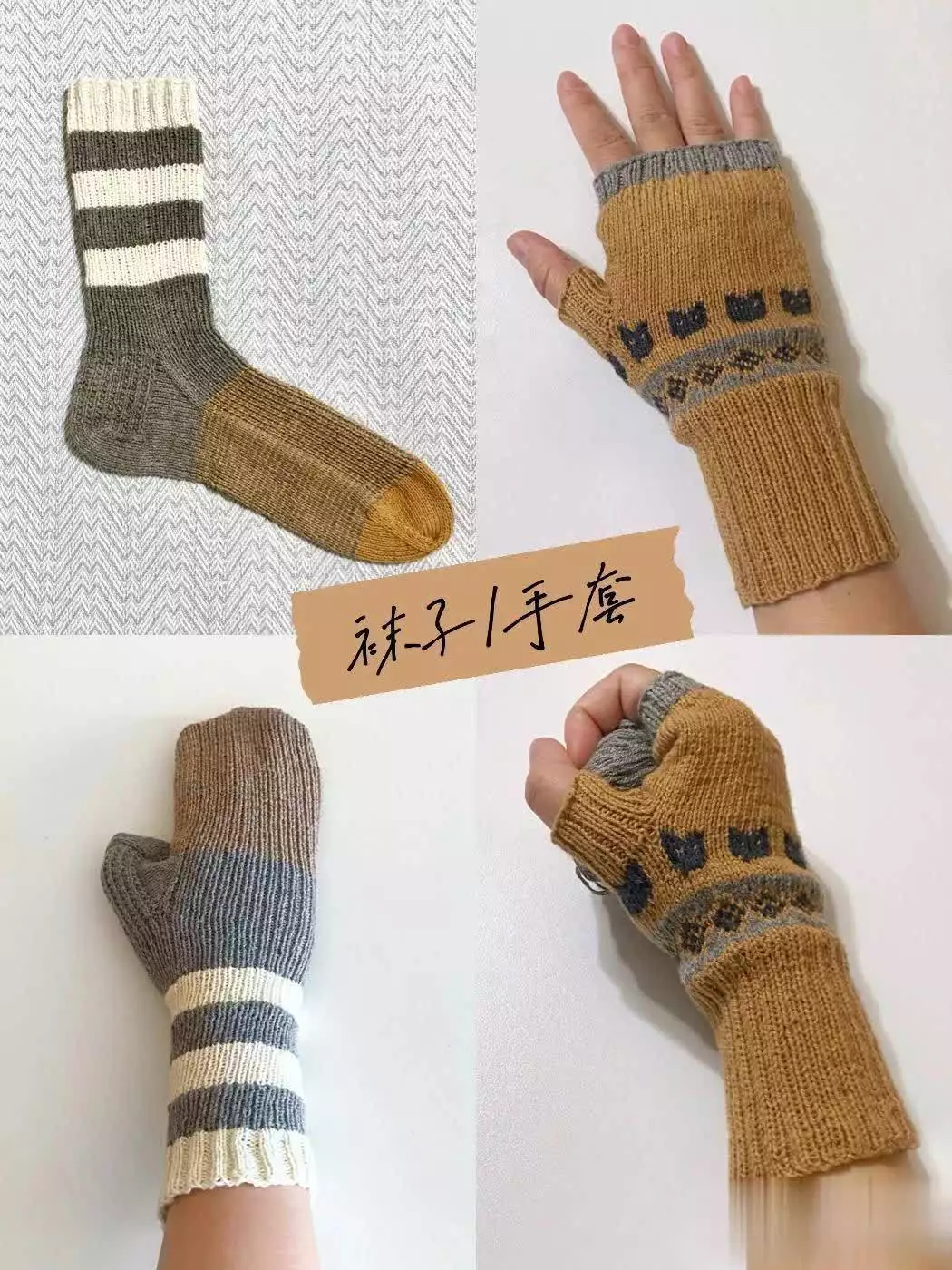 但如果你把它改造成用得上的东西就不浪费了。比如咱们冬天想要买护手腕的手套,只要将袜子的一截剪掉,然后在侧面剪一个大拇指大小的开口,就变成了喽五指的手套+护腕。