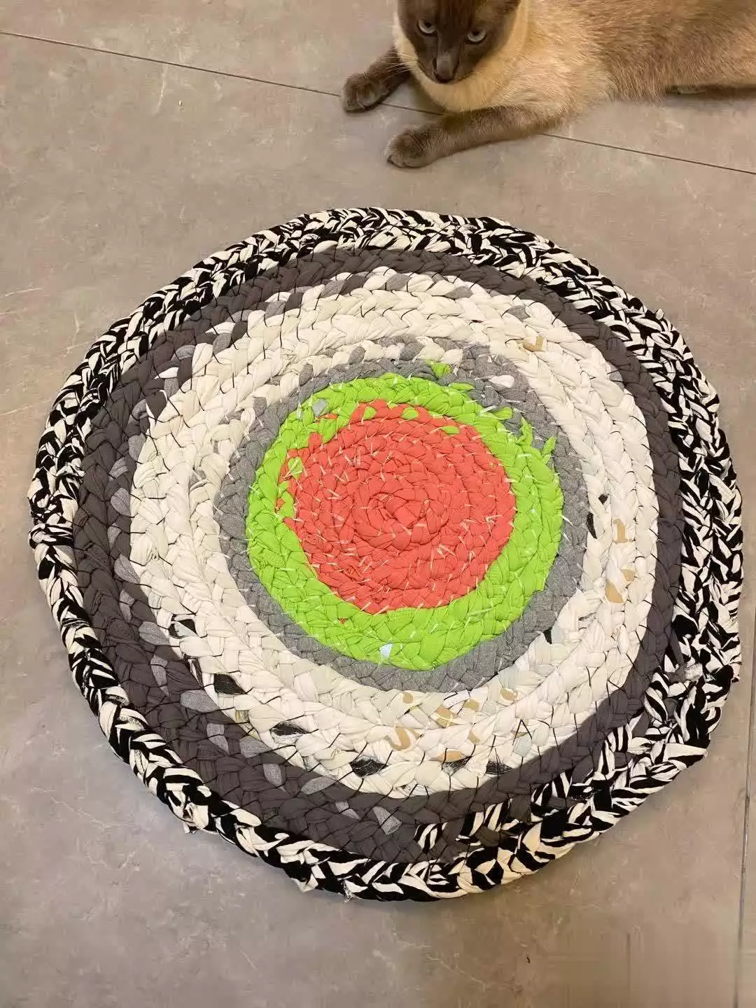 用编制的方法做地垫或者是隔热垫、桌垫等等都可以特别是家里的厨房和浴室,以及玄关门口的地方,都需要垫子来保护地面,不妨用这些不穿的旧衣做一个,不仅充满特色,还非常吸水,用脏了就放在洗衣机里面洗洗就好了