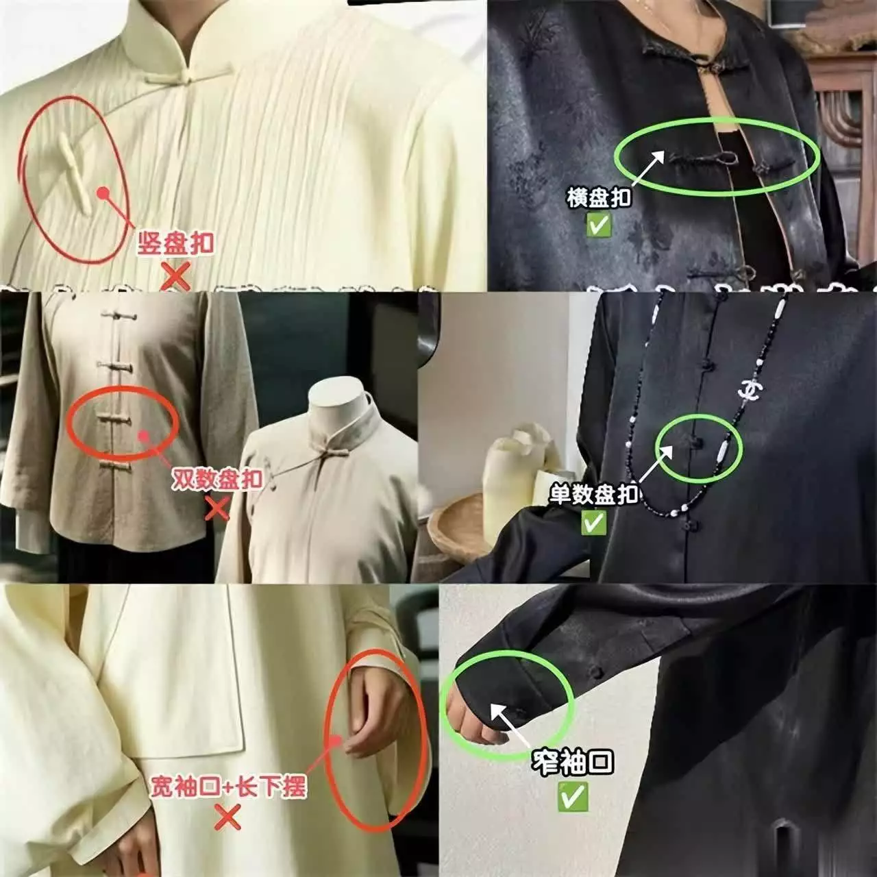 新中式单品本身也难穿,深色、暗色穿上太老气,单穿配牛仔、长裙都很违和还有无良商家胡乱设计,将新中式变成了“寿衣”在中国传统文化中,竖盘扣、双数盘扣和宽袖口+长下摆都是标准的寿衣款式买新中式得挑横扣、单数盘扣和窄袖口的设计。