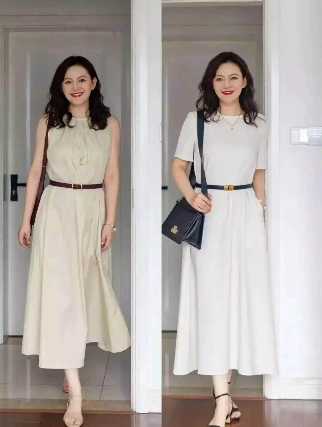 想要自己的穿衣打扮不容易,出错的情况下,我们直接选择纯色系的衣服单品最佳,比如说白色的连衣裙,搭配上黑色的高跟凉鞋,肩膀上画的一款鼻子的包包,再用黑色的小腰带来点缀,瞬间散发出高级感,微胖女人这样穿搭再适合不过了,能散发出你的优雅与自信。