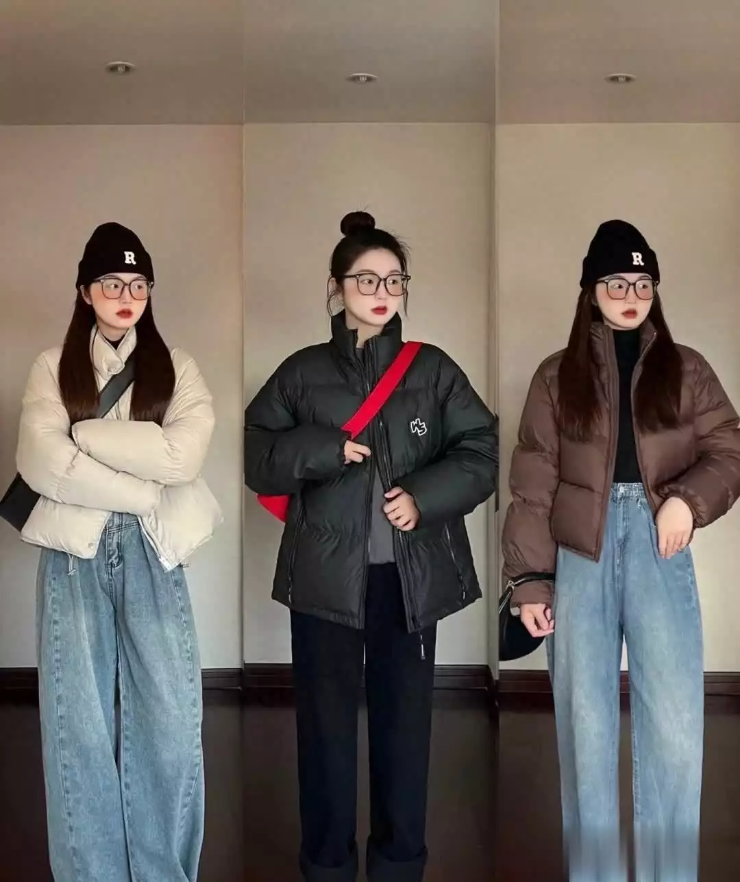 如果当天的状态不太好,建议大家可以利用眼镜作为装饰和修饰。不同脸型的女性适合的眼镜有一些区别,无论是搭配羽绒服还是各种材质的大衣,都可以起到一个很好的融合的作用,还能掩盖一下可能不太好的气色。