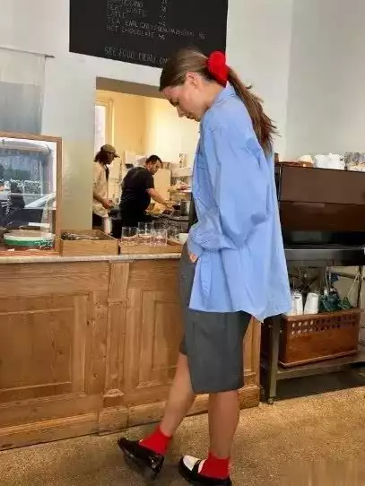 圆头的乐福鞋,更显减龄俏皮,时刻保持少女风范,不会有头重脚轻之感,整体穿搭更显中和协调。