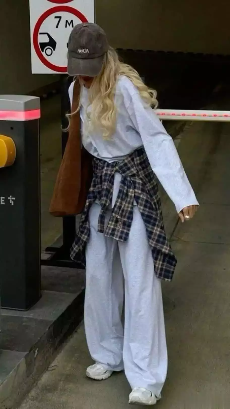 格子衫是图案单品,配纯色最不会出错。尤其是系在腰间或叠穿,想要不费力的时髦感,就要严格把控色系,一身同色最显高级。
