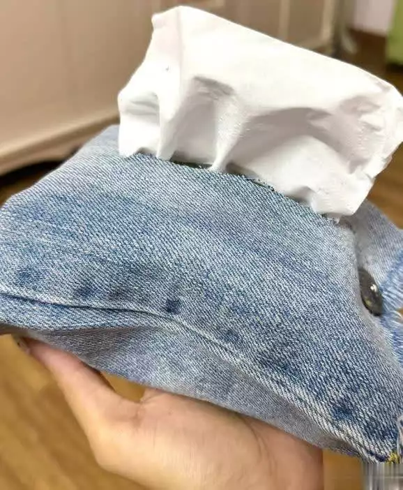 在牛仔裤上面划开一个口子,纸巾塞进去,然后从牛仔裤上面的口子把纸巾抽出来。07、牛仔包在网上看好了一个牛仔包,一看价格居然要一百多。