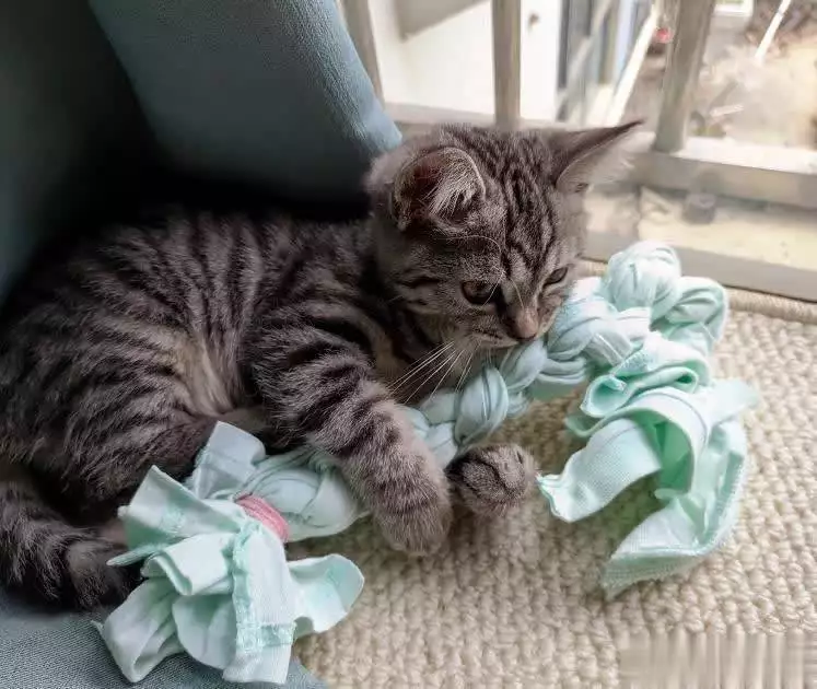 不穿的旧衣服,剪成条,然后把这些旧衣服条编织起来,给猫咪玩刚刚好。